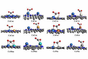 研究背景 电催化 CO2 还原反应(CO2RR)能够在较温和条件下将 CO2 转化为高附加值化学品,是当前碳资源转化与能源化学领域的重要研究方向。其中,乙烯、乙醇等 C2 产物不仅附加值更高,也更能体现催化剂在 C–C 耦合步骤上的调控能力。相比 C1 产物,C2 产物的生成涉及更多中间体和更复杂的反应分叉,因此,如何从原子尺度揭示催化剂结构、反应路径与产物选择性之间的关系,一直是 CO2RR 理论研究中的关键问题。 双原子催化剂由于具有相邻双活性中心和可调电子结构,在促进 CO2 活化、关键中间体稳定以及 C–C 耦合方面展现出独特优势,近年来受到广泛关注。围绕这一方向,相关研究构建了 Co 基双原子氮掺杂石墨烯模型,系统比较不同双原子组合和不同位点构型下的稳定性、反应活性与产物选择性,为高选择性 CO2RR 催化剂设计提供理论依据。 在这类研究中,计算平台的适配性同样十分重要。AMS 软件中的 BAND 模块能够直接处理二维周期体系,适用于石墨烯、氮掺杂碳材料及表面催化模型;同时,结构优化、吸附能计算、溶剂模型、自由能分析以及电荷和轨道相互作用分析可以在同一平台内完成,因此非常适合开展这类涉及构型、吸附、路径、机理等全流程的理论研究。 研究内容 云南大学刘世熙课题组采用 AMS 计算软件中的 BAND 模块,设计了两种构型的 DACs 首先计算了不同构型载体的形成能以及其对金属原子的吸附能,结果表明a构型载体具有更低的形成能,同时对过渡金属原子的吸附能力也更强。此外,通过 Bader 电荷分析、PDOS 及 COOP 计算,进一步验证催化剂中 M1 和 M2 的 3d 轨道与 N 的 2p 轨道之间存在明显的成键作用,从而揭示了催化剂的稳定性。 图1. CoN3-M2N3@NGr-a(a)以及CoN3-M2N3@NGr-s(b)的俯视图;CoN3-M2N3@NGr-a(c)以及CoN3-M2N3@NGr-s(d)的侧视图 采用 BAND […]