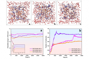 研究背景 可发性聚苯乙烯(EPS) 泡沫因其优异的隔热性、稳定性和低成本等特性,在建筑保温领域占据主导地位。然而,其高度易燃性导致严重的火灾隐患,燃烧时产生的有毒烟雾更是火灾致死的主要原因。阻燃 EPS 泡沫板能有效抑制火灾初期的火势蔓延,显著降低材料燃烧时的热释放速率和有毒烟气产生。因此,提高 EPS 的阻燃和抑烟性能至关重要。 研究内容 本研究由沈阳理工大学和辽宁工程技术大学等单位合作,基于机器学习势方法,使用 AMS 软件中的 ML Potential 模块来完成燃烧模拟工作,其中的 M3GNet 经过 SCM 公司训练优化,成为普适性较好的一种势,默认情况下即可模拟 89 种元素的体系,支持用户针对特定体系进一步优化训练。 作者构建三聚氰胺改性脲醛树脂、纳米二氧化硅、硼酸阻燃涂层晶胞模型,通过模拟手段从微观层面阐明了体系在燃烧过程中通过气相及凝聚相的协同阻燃机制,为高性能 EPS 阻燃涂层的设计提供了理论依据与实践指导。 图 1 涂层分子模型 本研究采用NVT系综模拟阻燃材料的燃烧过程。总模拟步数为120,000步,时间步长为0.25 fs。 温度控制采用Nosé-Hoover(NHC)热浴方法,阻尼常数为10 K/fs,具体设定为:298 K(10,000步)→ 2500 K(40,000步)→ 3500 K(60,000步)→ 4000 K(10,000步)→ 298 K。 在模拟过程中,0-2500 fs 阶段涂层体系内的势能在增加,说明该阶段体系内发生吸热反应;在 2500-7500 fs 阶段体系内的势能在缓慢降低;在 7500-30000 fs 阶段体系的势能趋于平衡。在 7500 fs 内随着温度的升高,三种涂层体系内的总分子数量在快速增加,7500-30000 fs 内,体系内分子的数量上下波动减弱,说明体系内燃烧逐渐减弱,分子的消耗和生成逐渐趋于平衡。 图 2 […]