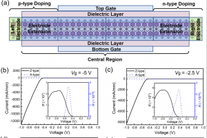 研究背景 随着二维材料在纳米电子与光电子器件中的广泛研究,开发兼具可调电子结构与多器件适用性的新型二维材料已成为当前的重要研究方向。除石墨烯、过渡金属硫族化合物(TMDs)等体系外,MXene 材料因其丰富的化学组成、可控的边缘修饰基团以及优异的电学性能,逐渐展现出在下一代电子器件中的应用潜力。尤其是通过边缘修饰工程,MXene 的功函数、载流子类型和能带结构可在较大范围内调控,为其从传统电极材料向有源半导体材料拓展提供了可能。 在众多 MXene 体系中,Sc2CT2(T=F, O) 由于其相对稳定的结构和对边缘修饰高度敏感的电子性质,引起了研究者的关注。不同修饰原子可显著改变其费米能级位置与载流子行为,使同一母体材料呈现出类 p 型或 n 型特性,为构建 p–n 结器件提供了天然优势。然而,目前关于 Sc2CT2 在具体器件层面的系统研究仍较为有限,尤其是在多功能电子与光电子器件中的综合应用潜力尚未得到充分探索。 研究内容 本研究基于第一性原理计算,系统探讨了 Sc2CT2(T=F, O) 在多种电子与光电子器件中的应用潜力,重点分析其电子结构调控机制及器件层面的功能表现。首先,通过密度泛函理论对 Sc2CT2 在不同边缘修饰条件下的能带结构、态密度及功函数进行计算,阐明 F 与 O 修饰对其载流子类型和能级分布的调控作用,为后续器件设计提供理论基础。 图1. 投影能带与投影态密度图(a)Sc2CF2(b)Sc2CO2 其次,基于边缘修饰差异构建 Sc2CT2 扶手椅与锯齿形输运方向的 p-n 结二极管,系统分析 p–n 结二极管的整流行为及电流-电压特性,评估其在二维整流器件中的应用可行性。 图2. 锯齿型和扶手椅型 Sc2CT2 单层掺杂浓度为 1×1020 cm-3 时 p-n 结二极管的输运特性 进一步地,将 Sc2CT2 作为沟道材料,引入栅极调控模型,研究其在场效应晶体管中的栅控能力、开关特性及载流子输运行为,揭示边缘修饰对 FET 性能的影响规律。 图3. Sc2CF2 单层 pin 结 FET 的输运特性 在此基础上,本研究还考察了 Sc2CT2 在光照条件下的光吸收特性与光生载流子动力学行为,构建光电 FET 模型,分析光照对沟道电导和器件响应的调制效应,评估其在光探测与光电集成器件中的应用潜力。 图4. Sc2CT2 单层 pin 结光电 FET […]