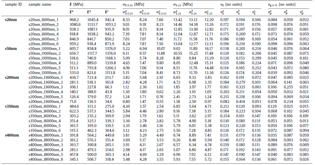 本数据集论文构建了一套完整的档案资料,包含纳米多孔金(NPG)结构的三维断层扫描重建图像文件、有限元模拟用体积网格文件、结构及其力学性能的表格数据。该存档数据可作为纳米多孔网络材料的数据库,在材料科学领域重复应用于数值模拟、增材制造、机器学习等。