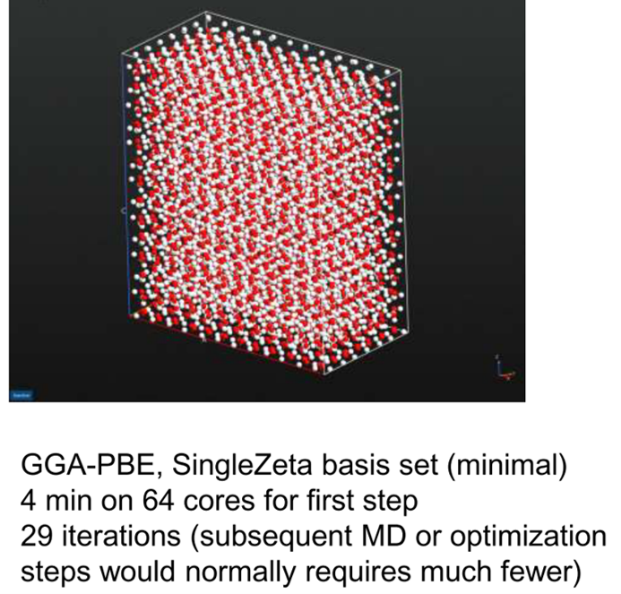 DFT-LCAO 对大体系的计算能力优势明显,可以高效完成平面波基组无法很难实现的数前原子体系的自洽计算,随着版本的更新,计算速度提升明显。DFT-LCAO 支持大规模的并行计算。