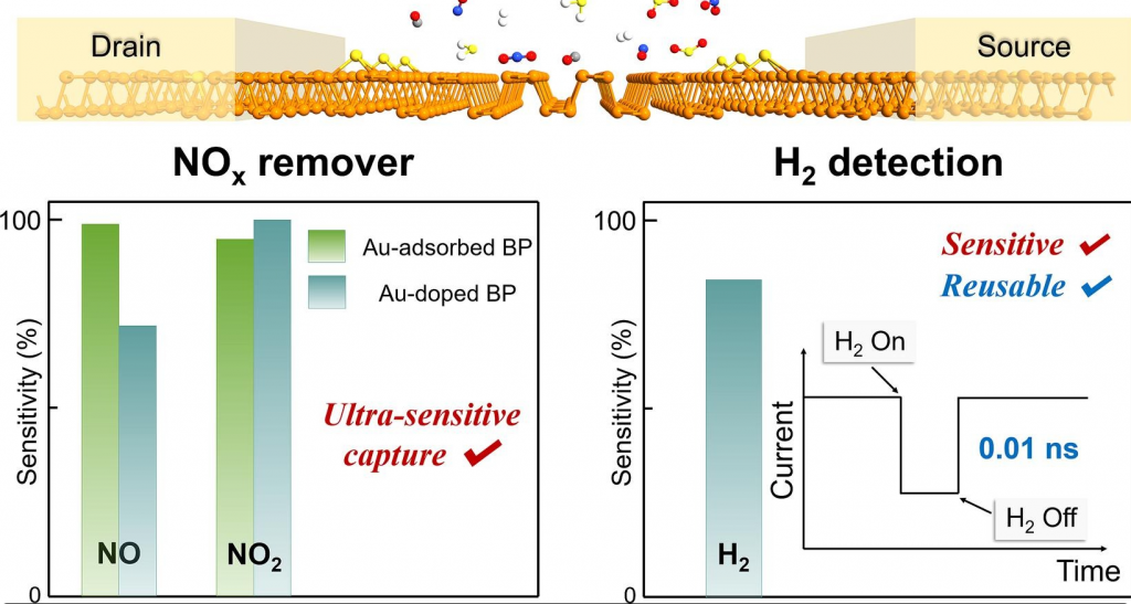 金修饰的黑磷:氮氧化物去除剂和氢传感器