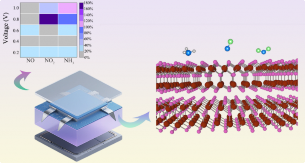 开发高灵敏度和高选择性的气体传感器对于环境监测应用至关重要。本研究利用密度泛函理论和非平衡格林函数方法系统地研究了双层 In2Se3 的电子结构和电荷传输特性。第一性原理计算表明,双层 In2Se3 在层间和底层位点均表现出对 NH3 的强吸附,且具有化学吸附特性。值得注意的是,NO、NO2 和 NH3 在底层的计算恢复时间分别为 3.75 × 10-4 秒、2.33 × 10-9 秒和 27.9 秒,表明其恢复迅速且完全,这对于传感器的可重复使用性至关重要。基于双层 In2Se3 设计的场效应晶体管气体传感器在模拟中展现出色的栅极可调传感特性。在零栅压下,该器件对 NO2 和 NH3 的检测灵敏度分别达到 163% 和 108%。栅压调控显著增强了传感性能,在 2 V 栅压下对 NO 的响应增加到 101%,比零栅压时提高了 2.6 倍。更重要的是,在 3 V 栅压下,该传感器对 NO2 表现出卓越的选择性,其响应远超 NO 和 NH3。这些发现证实了双层 In2Se3 在高性能气体传感方面的应用,并为设计具有栅压可调选择性和超高灵敏度的环境传感器开辟了新途径。